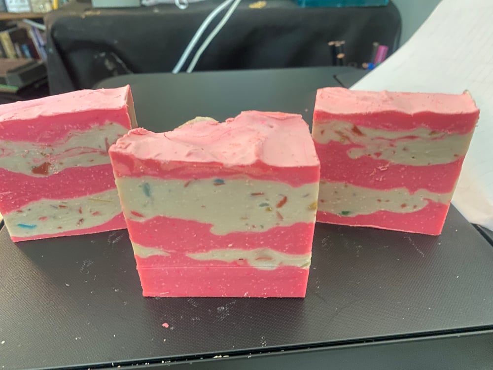 Olive oil, coconut oil, Vitamin E Oil, Castor oil, sodium hydroxide, Skin-Safe Colorants, fragrance oil, titanium Dioxide, sodium lactate